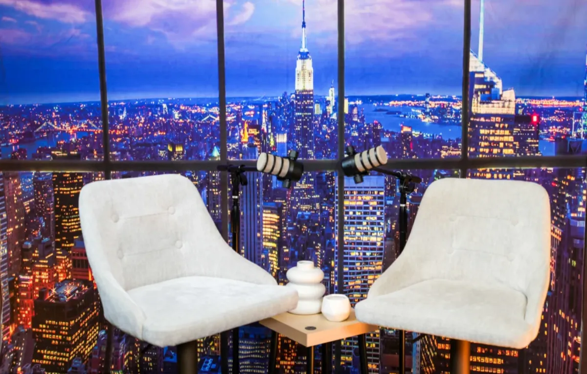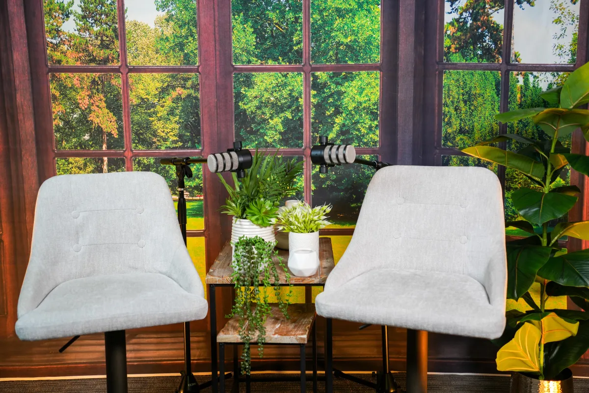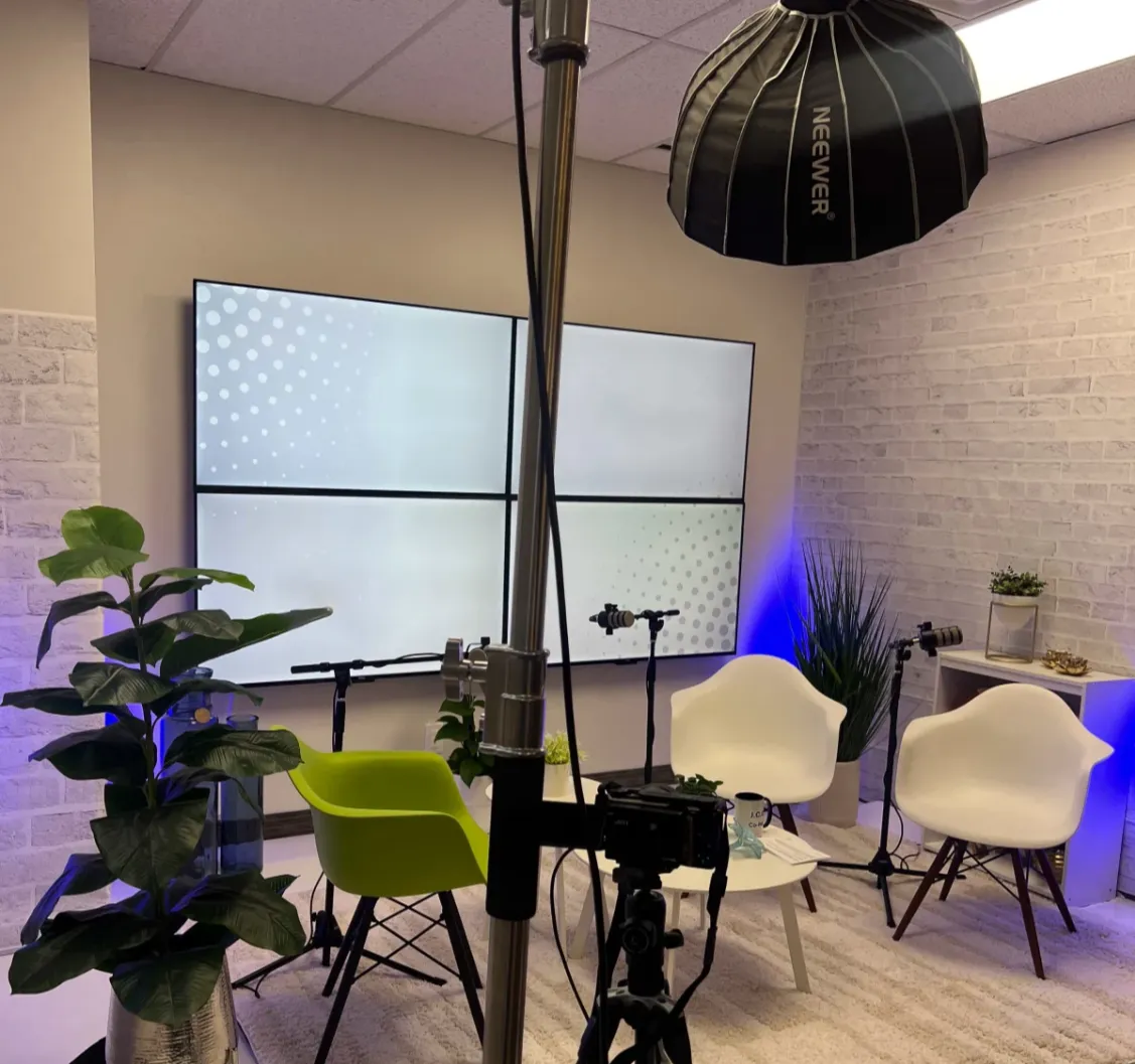 A comfortable, private environment—perfect for interviews, guest sessions, and distraction-free conversations.